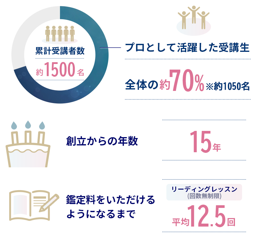 そのうち約7割が、“お客様の人生に寄り添い、プロとして報酬を得る鑑定”を実現しています。