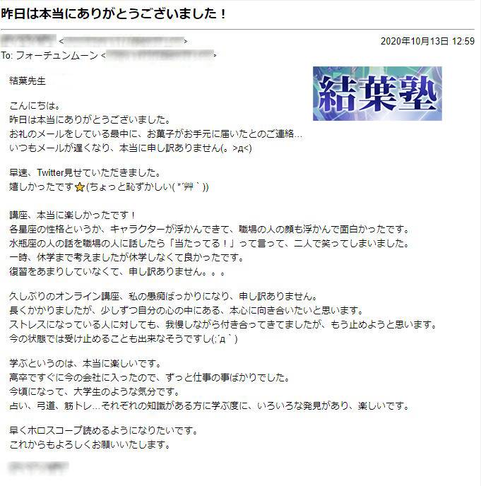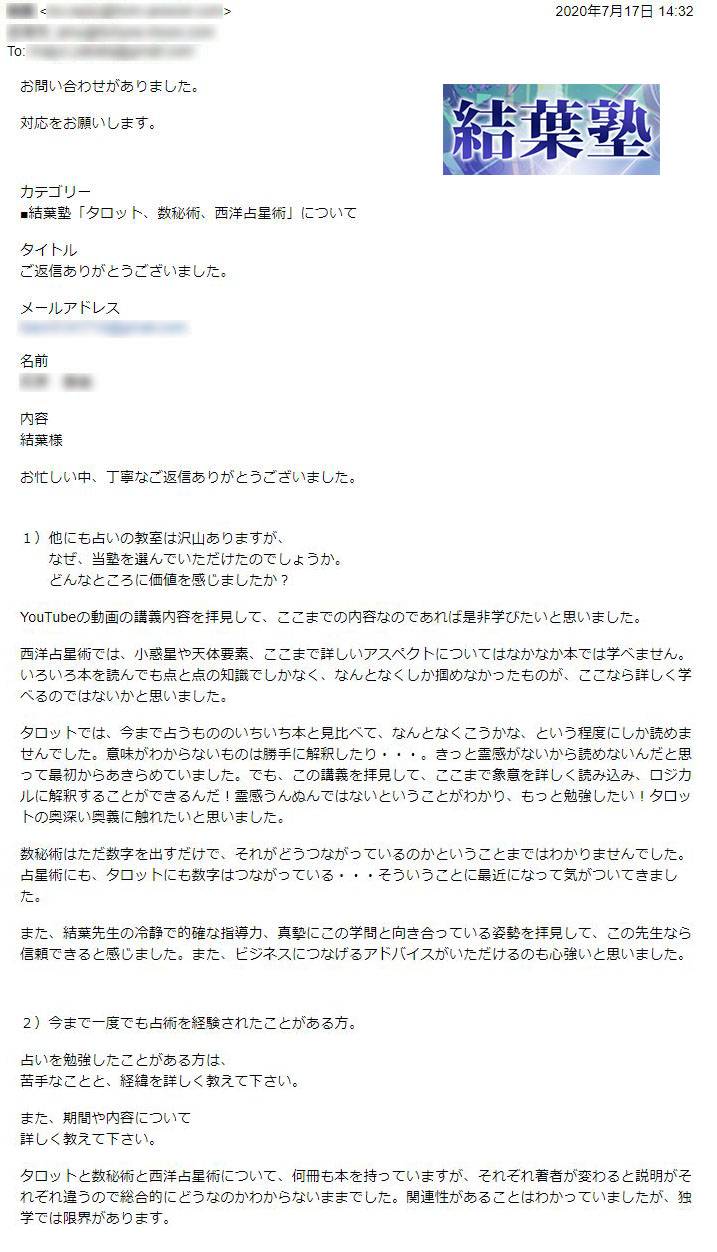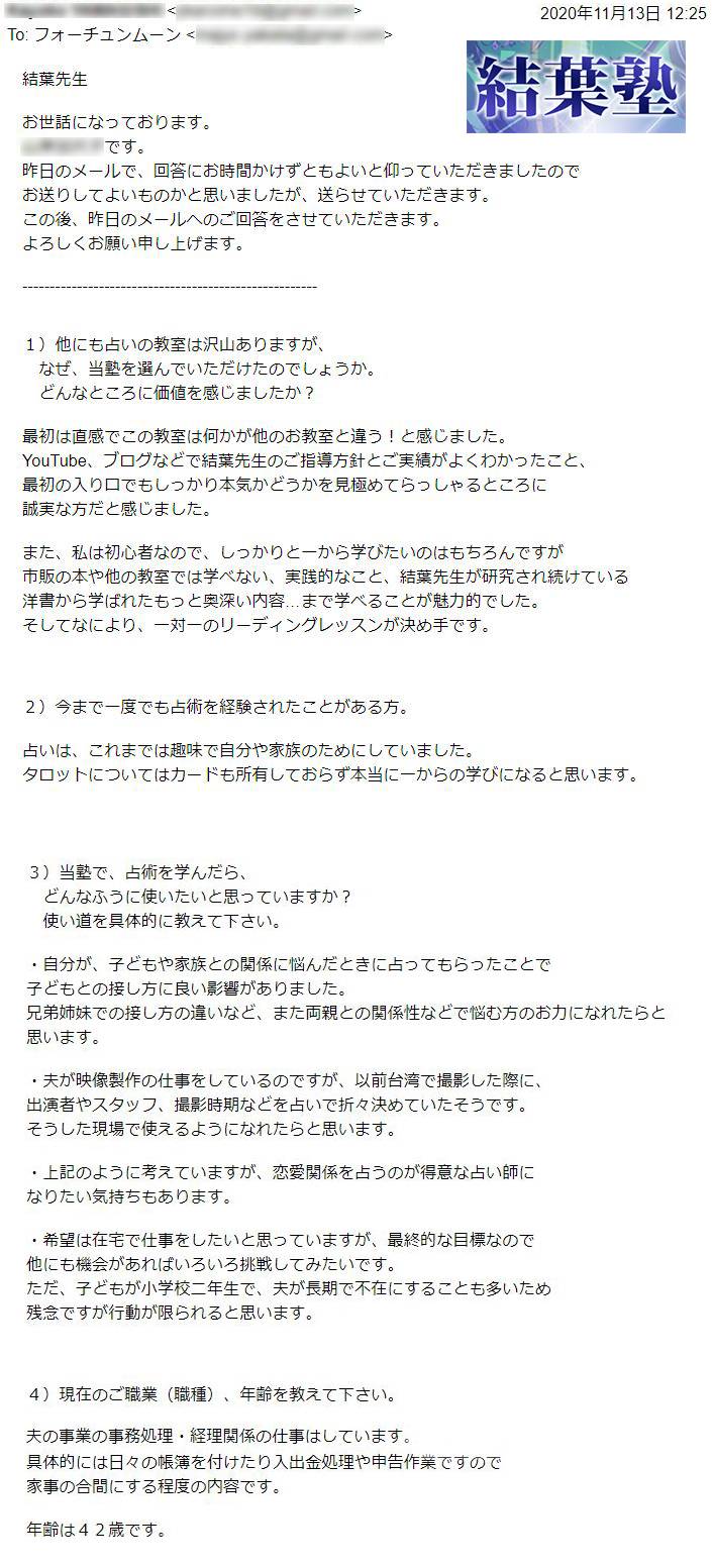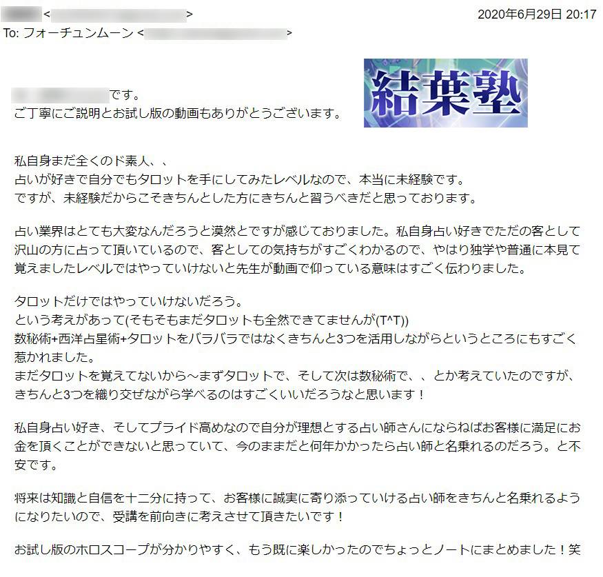 さらに結葉塾の受講生は、リーディングレッスン平均12.75回で、鑑定料をいただいて提供できるようになっています。