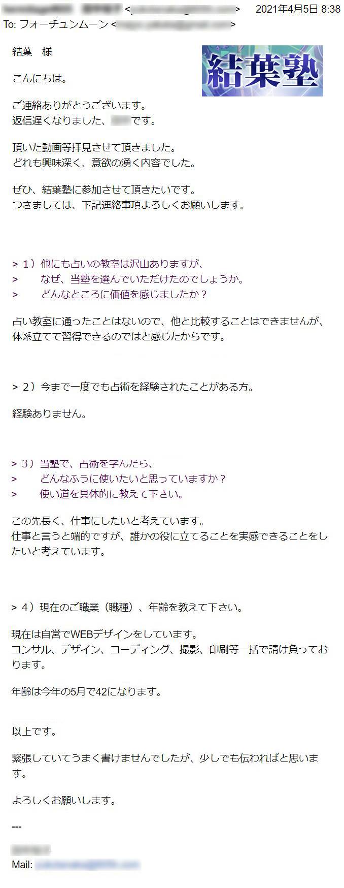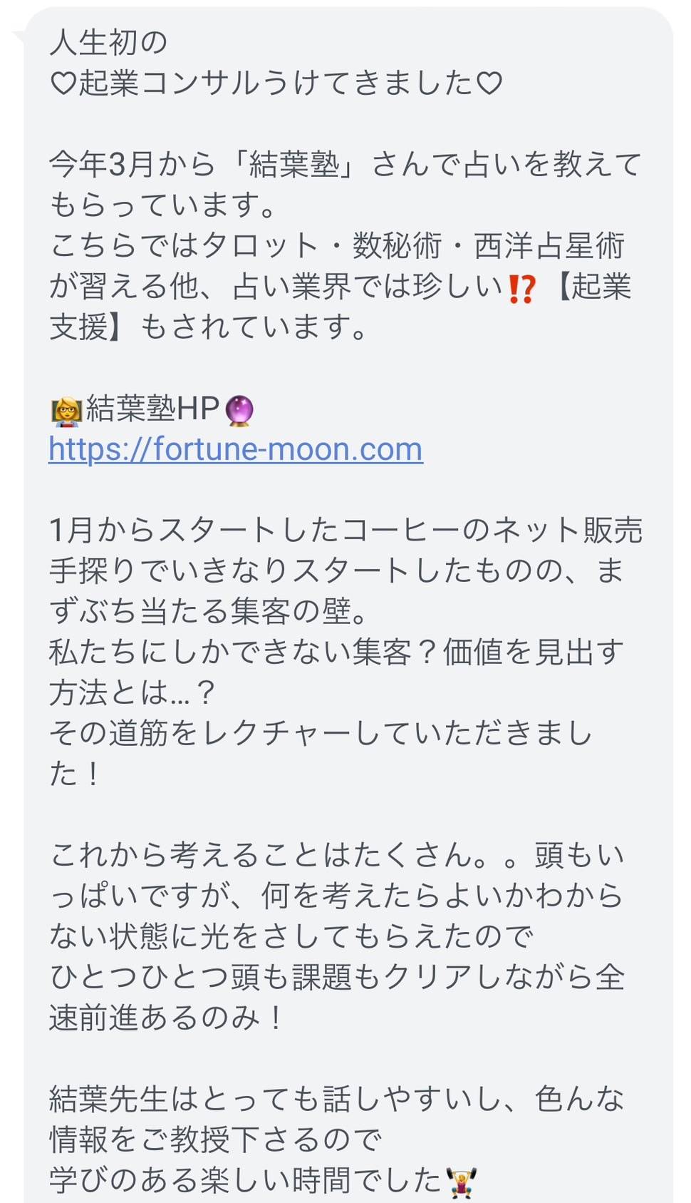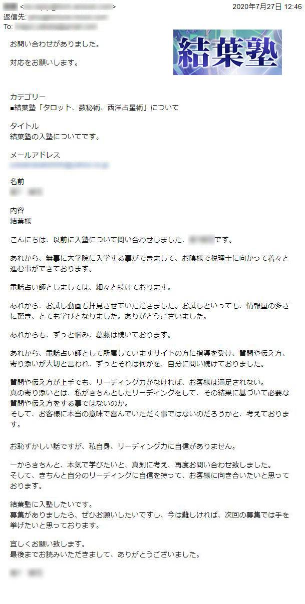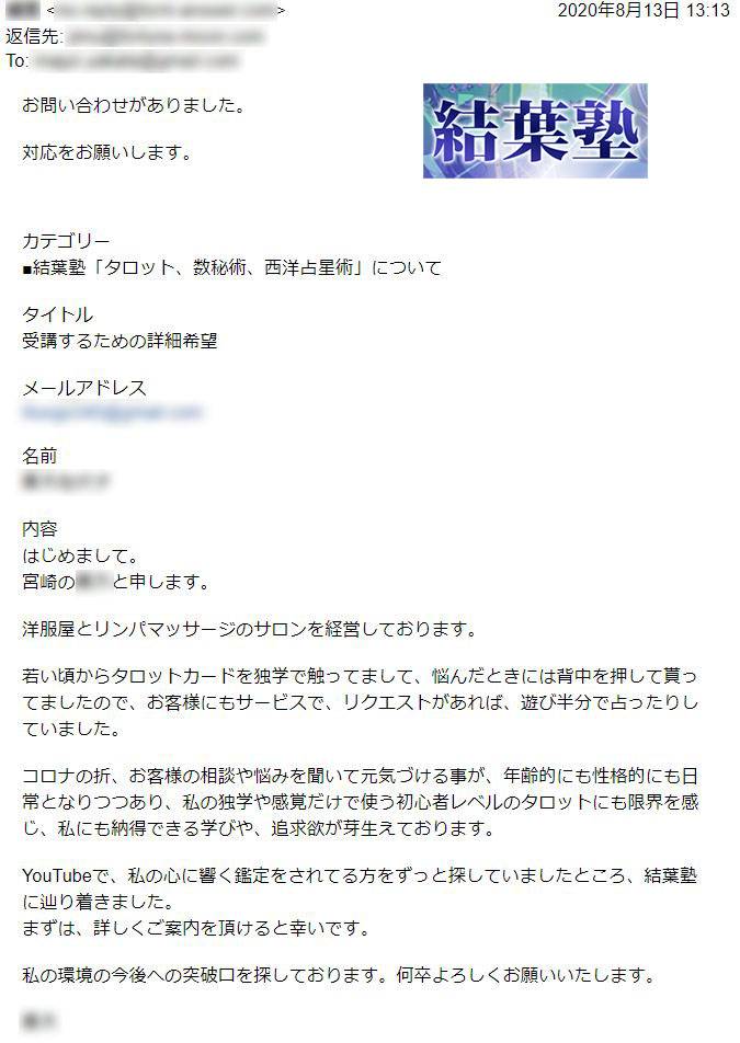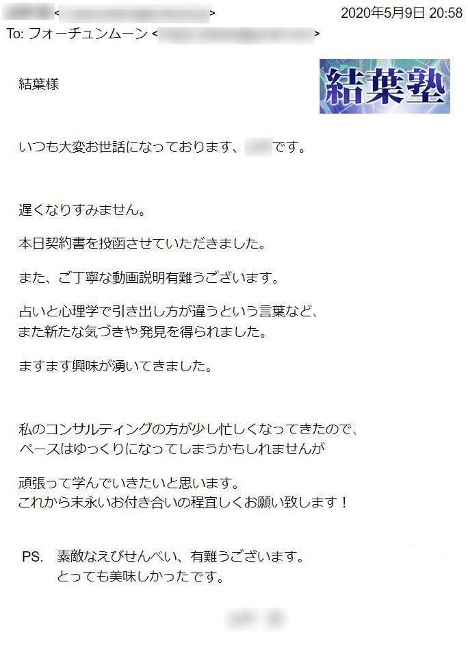 その結果、結葉塾の受講期間内に難関採用試験に合格。夢だったプロ占い師の活動を始めることができました。有名な占いサイトなので、ブランディングになり、今後の活動にもつながりやすくなりました。