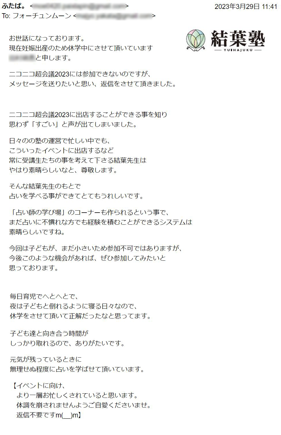 たくさんのお手紙、ありがとうございます